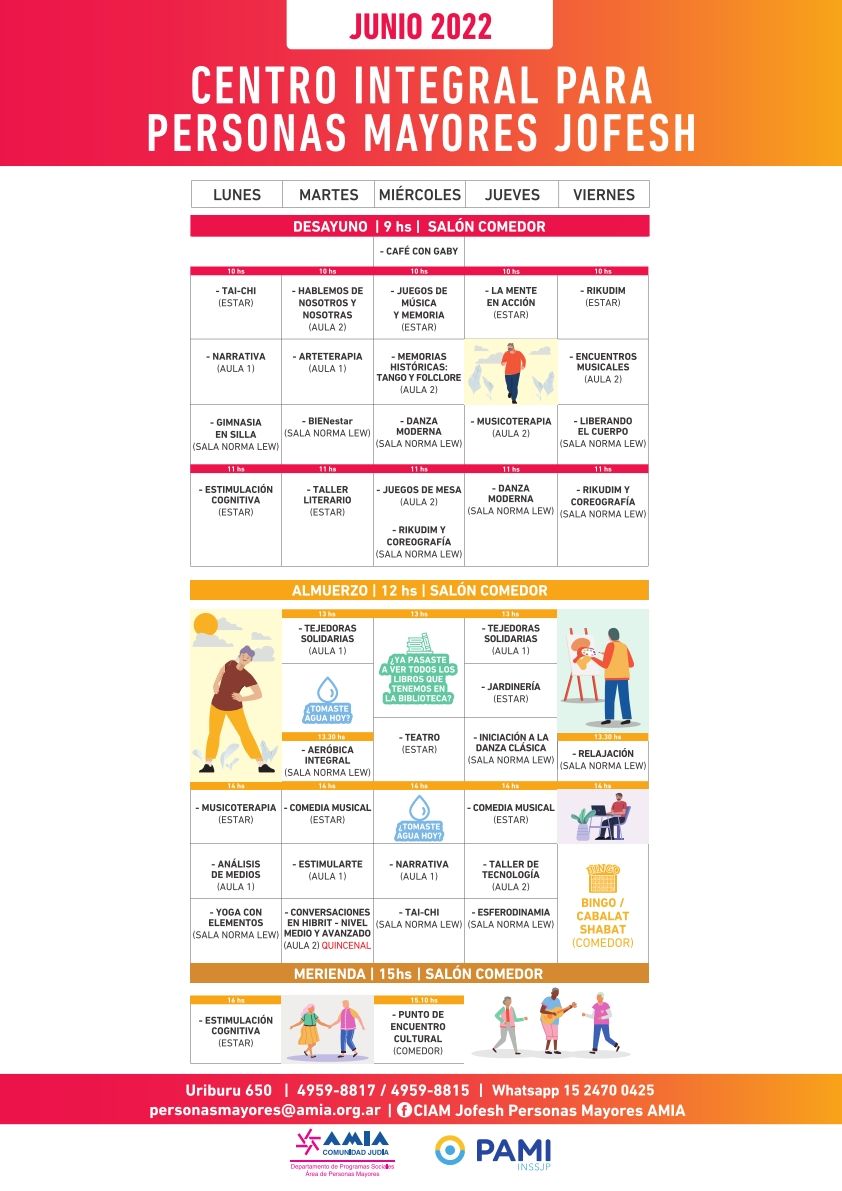 En diálogo conVivir Plenamente,el coordinador general del área de Personas Mayores de AMIAy Director del Centro Integral para Personas Mayores,Sebastián Fridman, sostuvo que se trata de “una gama enorme depropuestas para poder estar entre pares y disfrutar fortaleciendo nuestras redes socialescon el fin de retomar proyectos y actividades que muchas veces fuimos postergando a lo largo de la vida”.
