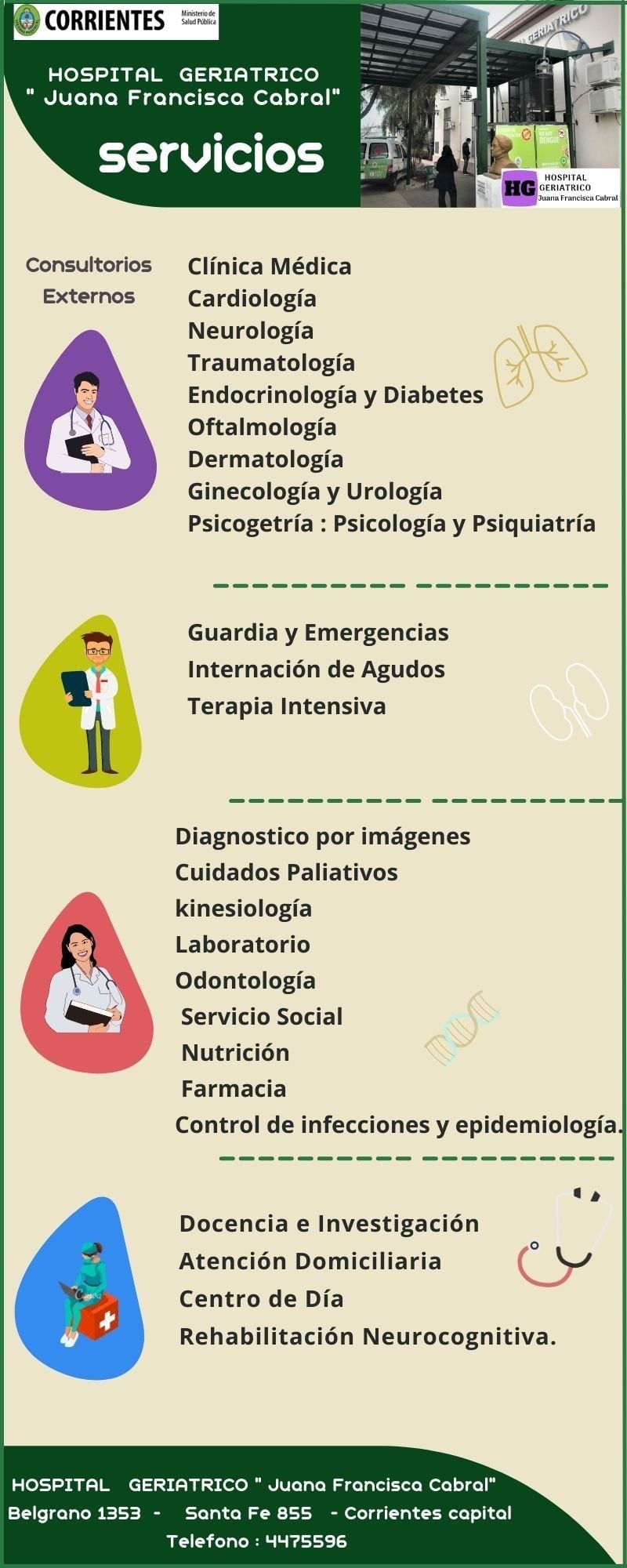 Continúa la atención regular de Guardia de Emergencias en el Hospital Geriátrico ‘’Juana Francisca Cabral. Atener en cuenta esta información: Ingresa el paciente sin acompañante, si requiere acompañante solo 1 persona puede ingresar. Se atiende con turnos programados, kinesiología, consultorios externos, diagnóstico por imágenes, laboratorio, etc. En salas de...