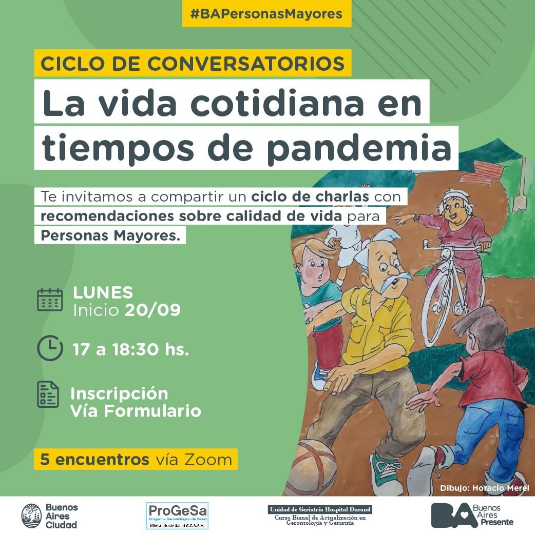 Te invitamos a participar del Ciclo de Conversatorios en el marco de las prácticas virtuales del “Curso Bienal de Actualización en Gerontología y Geriatría” organizado por la Unidad de Geriatría del Hospital Durand y el ProGeSa del MS-GCBAy dirigido por Prof. Lic.Perla Bronstein y Dra. Cecilia Volpe.