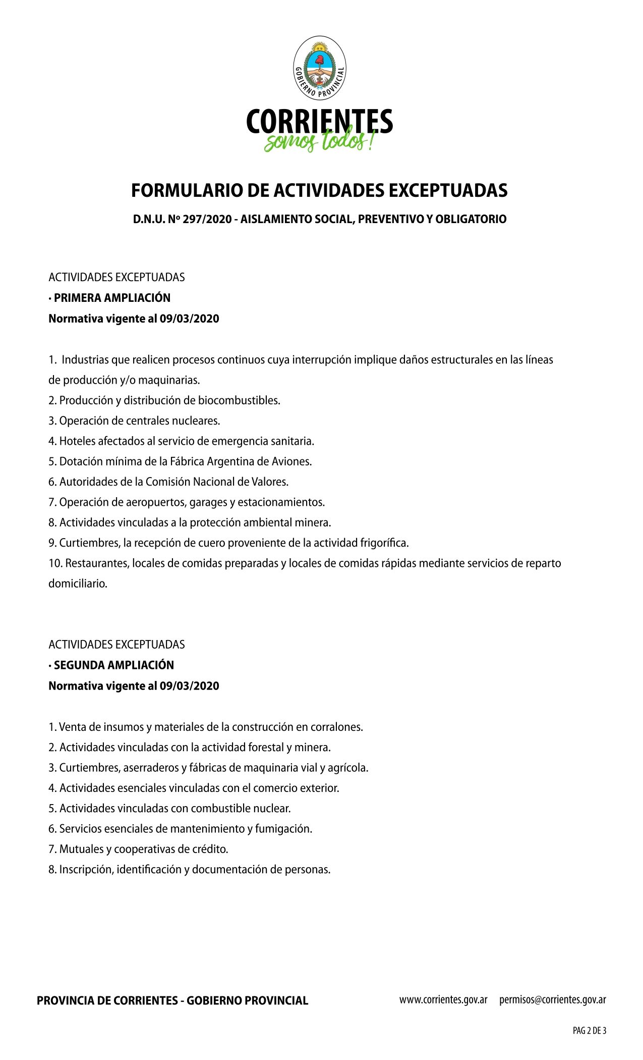 Desde la página del Gobierno provincial (https://www.corrientes.gob.ar/) se puede descargar la Declaración Jurada que cada trabajador debe completar con sus datos y el inciso correspondiente a la actividad que realiza, tal como dispone el Decreto de Necesidad y Urgencia (DNU) N° 297/2020 y las excepciones del Decreto provincial N° 650...