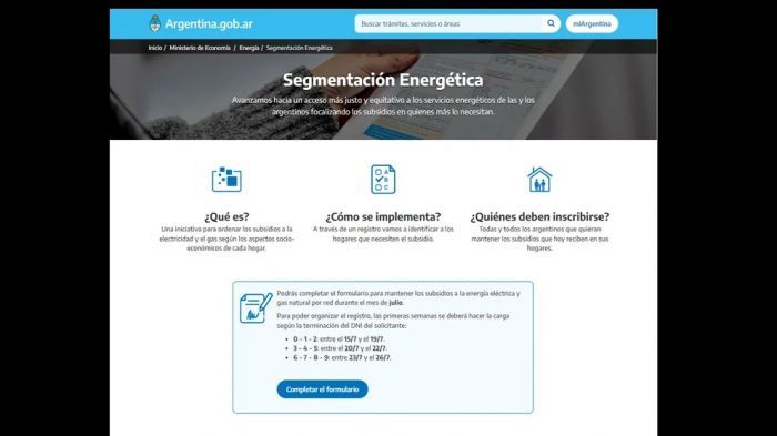 El Gobierno activó en la páginawww.argentina.gob.ar/subsidiosy la aplicación Mi Argentina, el formulario para la inscripción de usuarios y usuarios de cara a la segmentación de las tarifas, que comenzará a regir a partir del 1 de agosto.