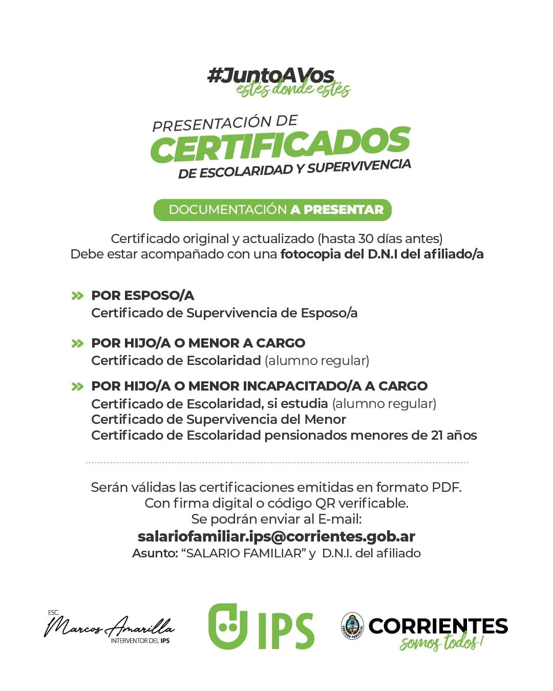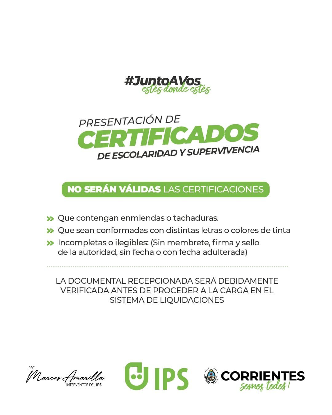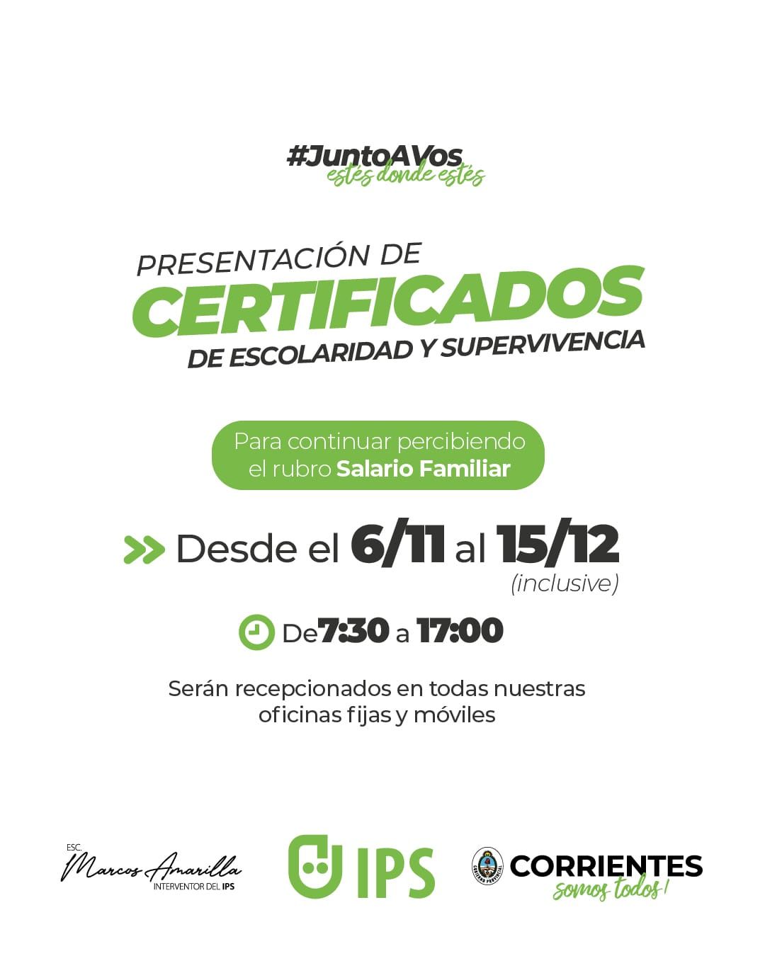 El IPSoficializa la fecha de entrega de certificados de escolaridad y supervivencia