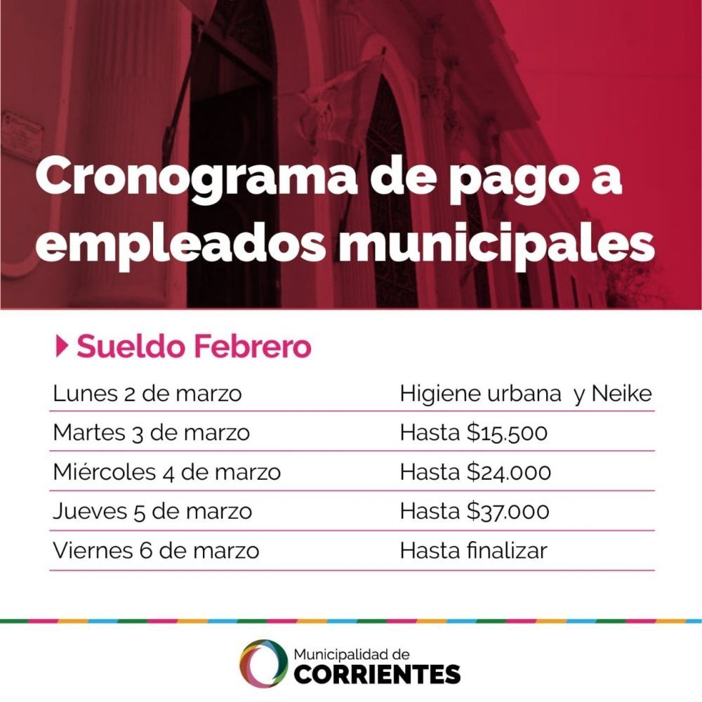 El lunes 2 de marzo arranca el pago de sueldos a municipales