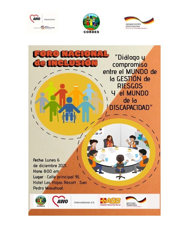 Los objetivos del encuentro son realizar una presentación de actividades al primer año 2021 del Programa Global sobre gestión inclusiva de riesgos para las personas con discapacidad, El Salvador. Además, evaluar avances en la integración entre la gestión de riesgos y el de las personas con discapacidad.
