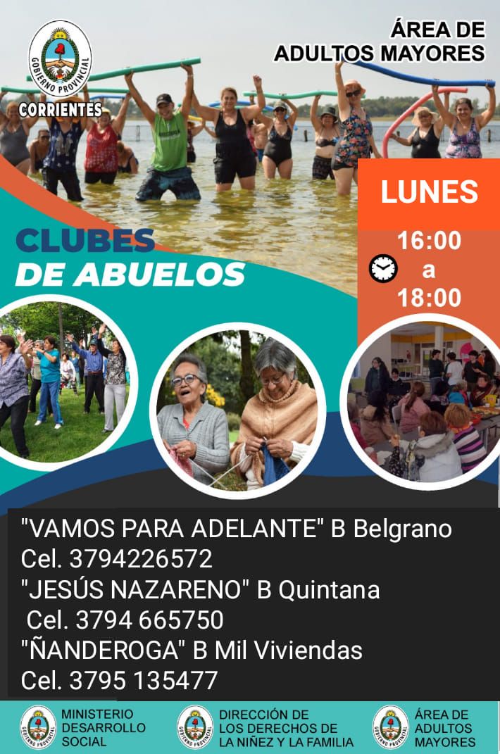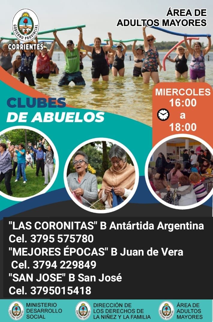 Aquellas personas interesadas en sumarse a los Clubes de Abuelos, pueden acercarse al Ministerio de Desarrollo Social Murcia 57, en el barrio Apipé, para conocer el club de AMmás cercano a su domicilio.