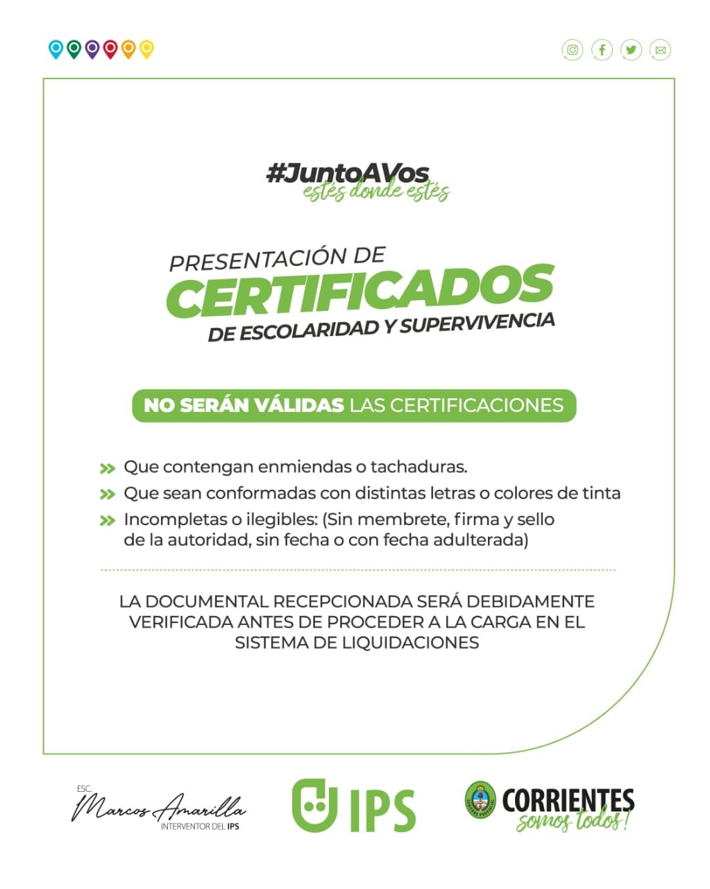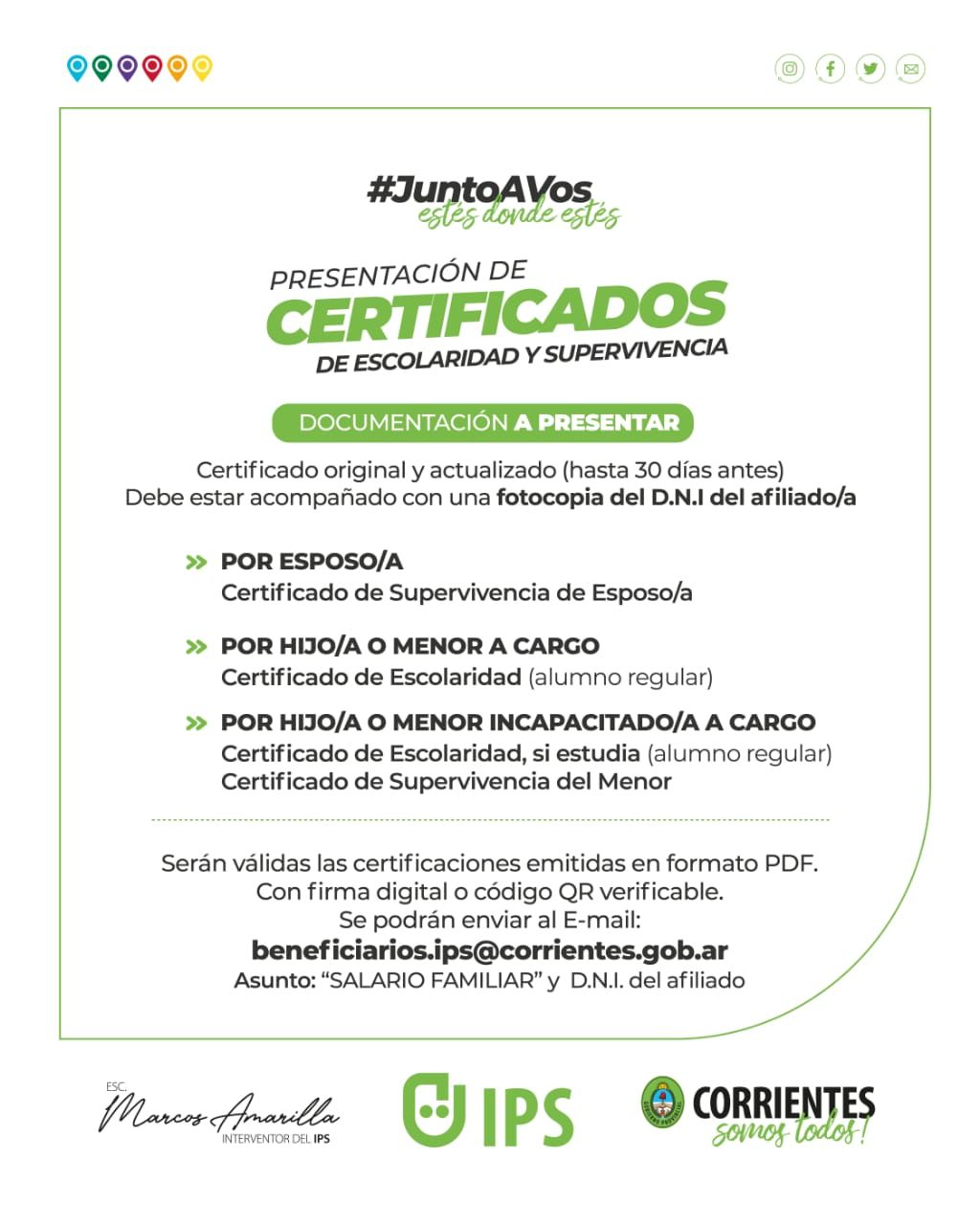 Además, quienes deseen emitir certificaciones vía web deben ser en formato PDF, con la firma digital o código QRabeneficiarios.ips@corrientes.gob.ar.
