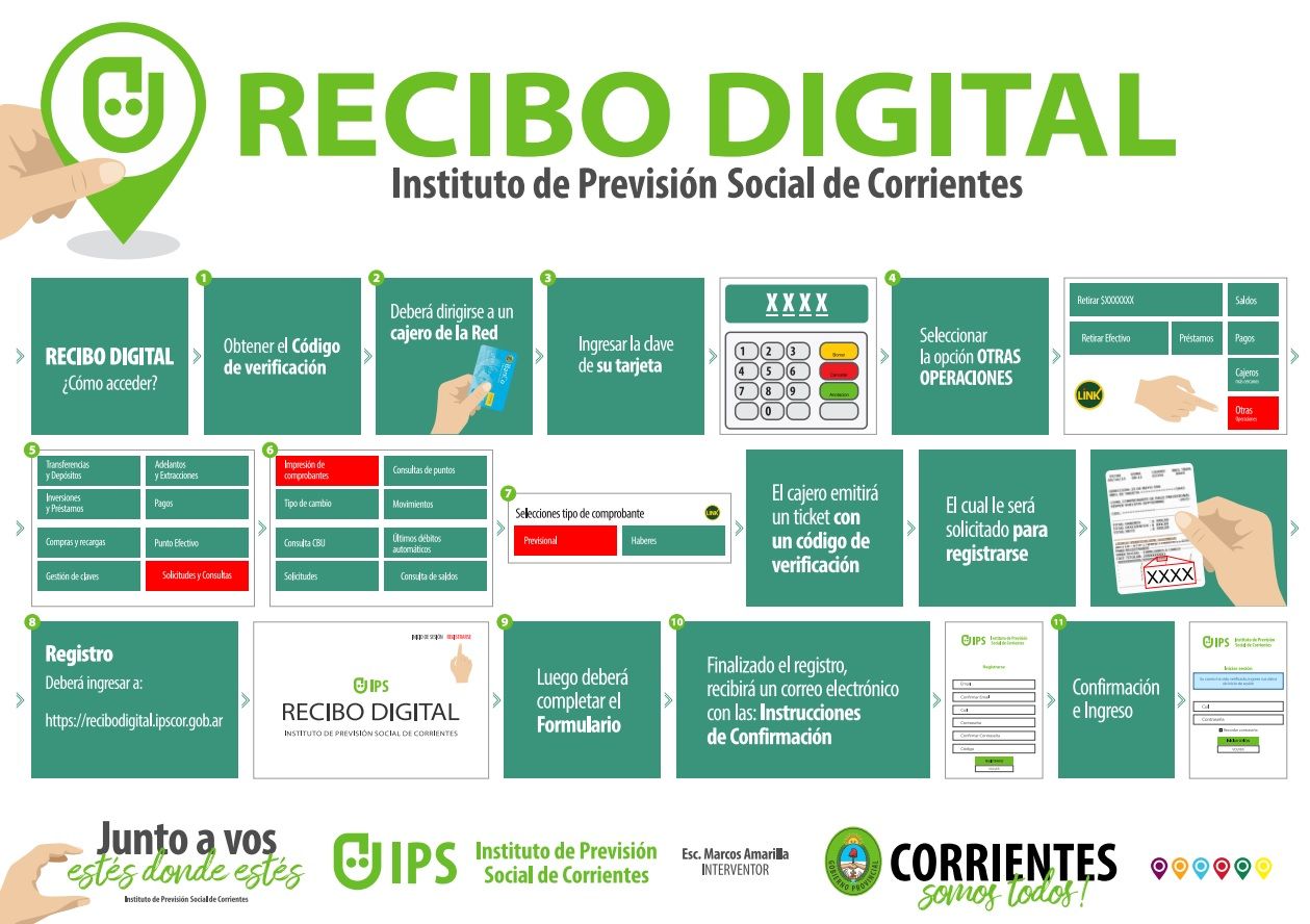 ✅ Podes comunicarte al call center 0800-555-4772 (de 8 a 12 hs.) para obtener un código de verificación que le permitirá luego ingresar desde la página www.recibodigital.ipscor.gob.ar o desde nuestra web www.ipscorrientes.gob.ar ✅ También podes acudir a un cajero automático de la Red Link, marcar la contraseña, seleccionar Otras operaciones...