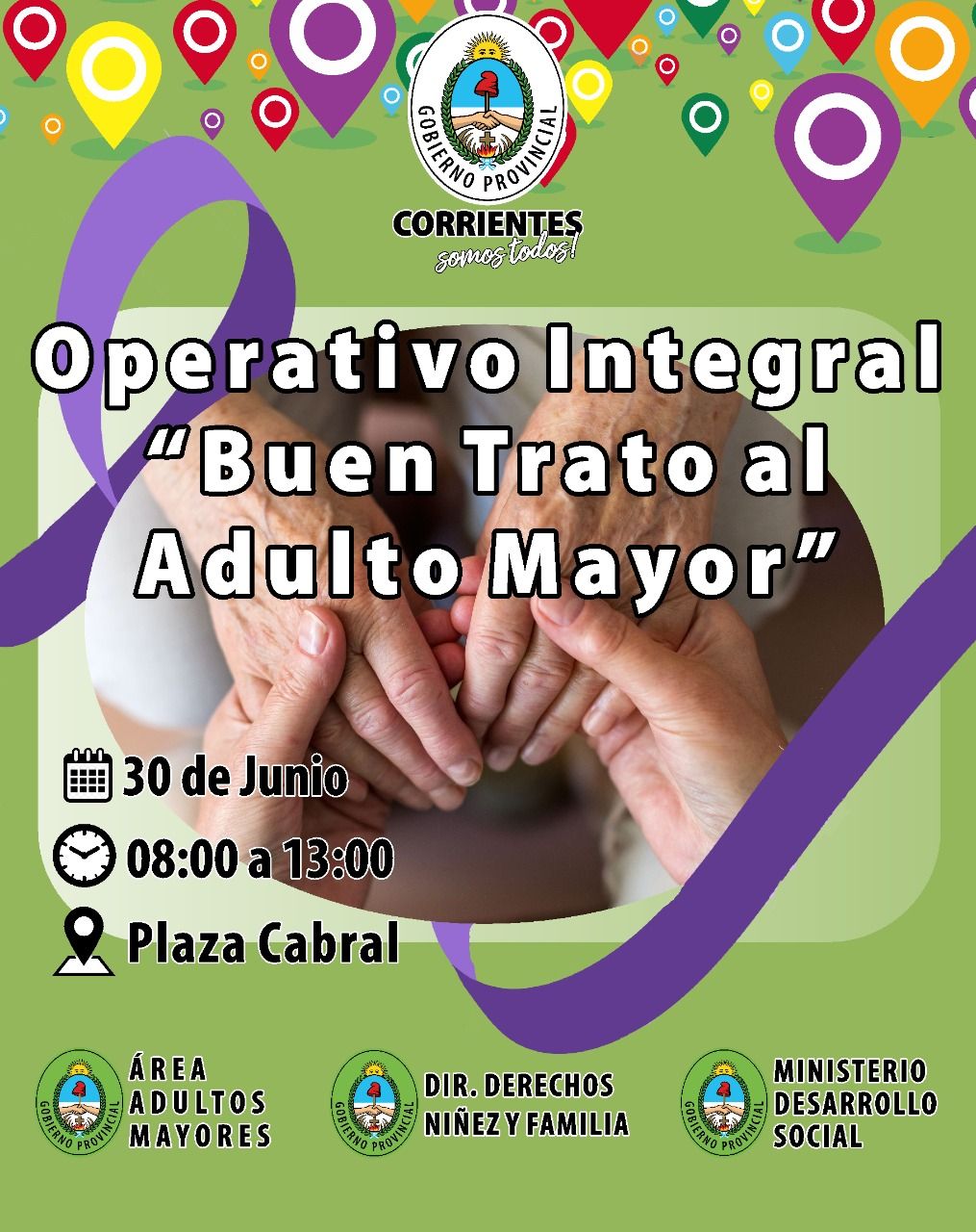 Este jueves 30 en el marco de la Campaña del Buen Trato al Adulto Mayor se llevará a cabo un operativo integral en la Plaza Cabral de 8 a 13. El evento es organizado por el Ministerio de Desarrollo Social de la Provincia, a través del Área de Adultos Mayores, dependiente de la Dirección de los Derechos de la Niñez y la Familia.