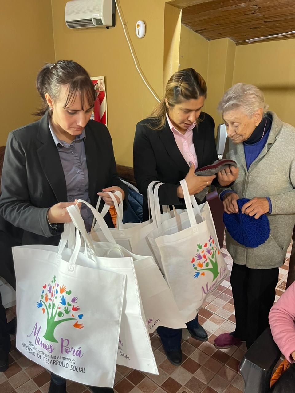 El Programa “Manos Porá”, dependiente del Ministerio de Desarrollo Social de la Provincia a través de la Dirección de Seguridad Alimentaria, entregaron más de 60 prendas tejidas a los adultos mayores del Hogar “Virgen de Guadalupe” del barrio Jardín de la ciudad de Corrientes. Es en ese marco que el director de Seguridad Alimentaria, Lucas Carballo; y la coordinadora del mencionado Programa, Nilda Cardozo, visitaron el hogar donde se hizo entrega de mantas, gorros, bufandas y medias. De esta manera las capacitadoras de Manos Porá trabajaron junto a personas que asisten a comedores y merenderos. “El objetivo es capacitar a quienes asisten a las bases y donar las prendas a los adultos mayores”, comentó Cardozo.