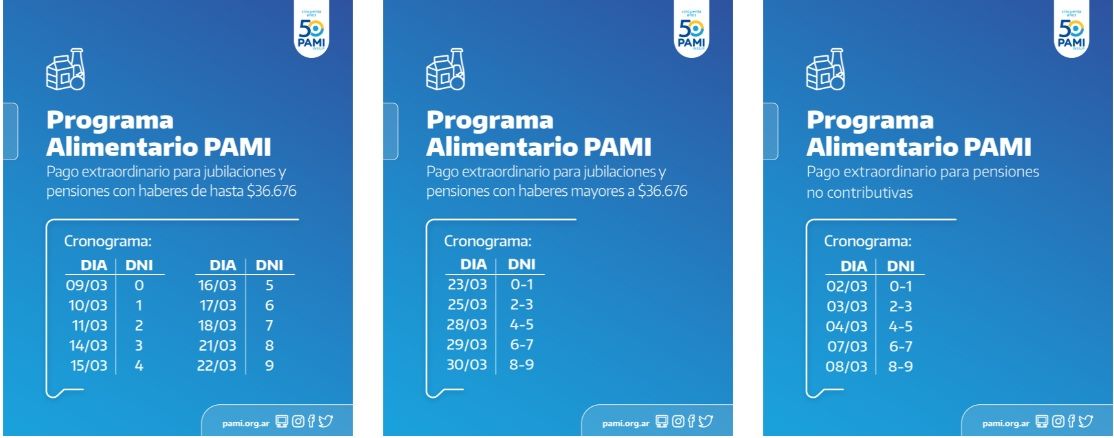 La Dirección Ejecutiva de PAMIinformó que desde el 2 de marzo pagará una nueva cuota del Programa Alimentario a más de 700.000 personas afiliadas.