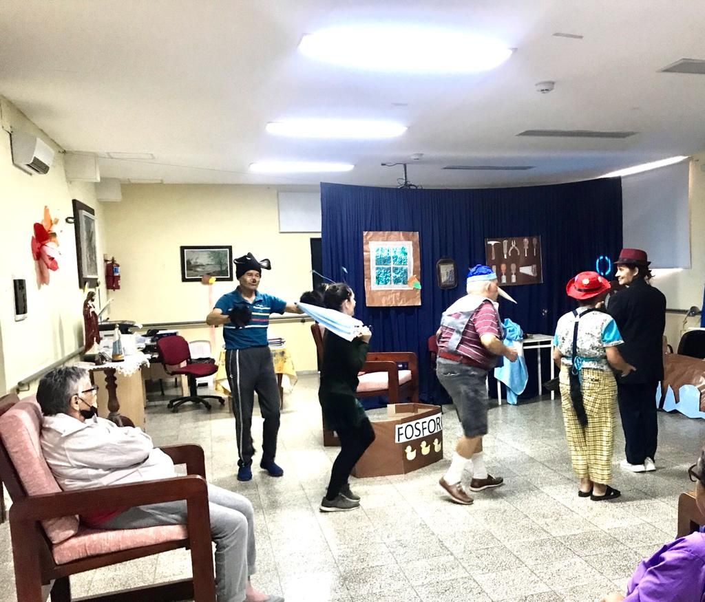 “Quisimos innovar un poco en las actividades haciendo obras de teatro, yelegimos infantiles porque hay una muy buena conexión con los niños y las personas mayores,entonces elegimos entre los cuentos uno, lo preparamos y mientras algunos estuvieron en escena otros se encargaron de la escenografía”, precisó.