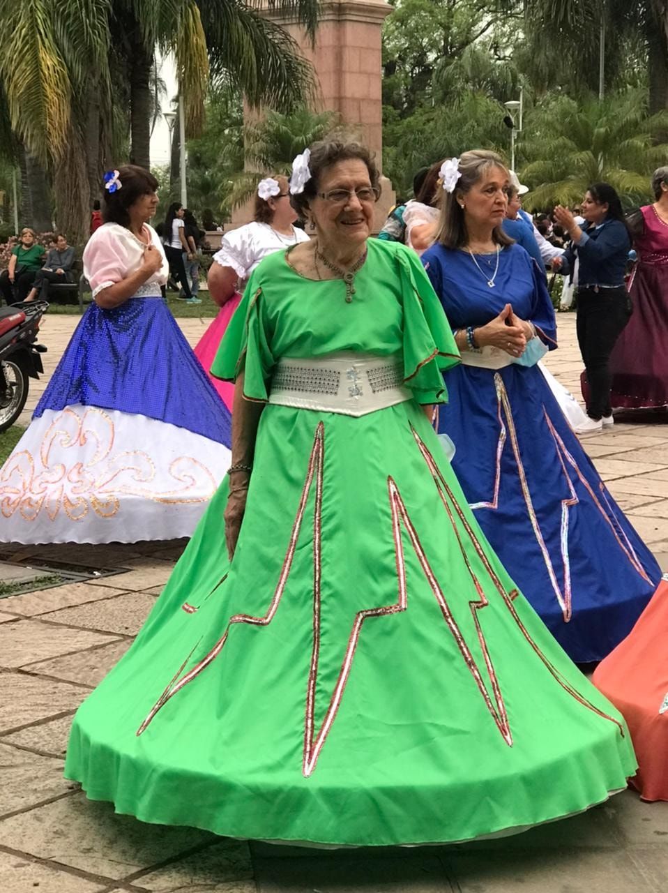 María Eva Ártico de Mecca tiene 80 años, y desde el año 2016 integra la comparsa de Los Nonos. Para ella, lo es “todo”. “Aparte de la actividad que se hace, el compañerismo es hermoso, yo no quiero faltar nunca”, destacó. Agregó además que se siente “muy feliz y alegre”.