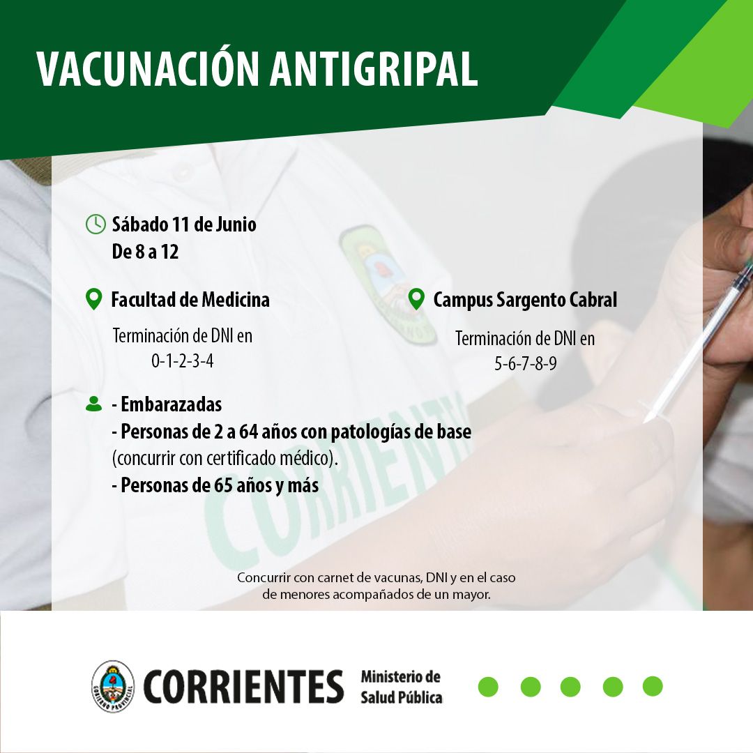 Este sábado de 8 a 12 la Campaña de Vacunación Antigripal continúa con el personal de salud, embarazadas (cualquier mes de gestación), personas entre 2 a 64 años con factores de riesgo (presentar certificación que avale dicha condición) y para mayores de 65 años. Para menores de 2 años, la...
