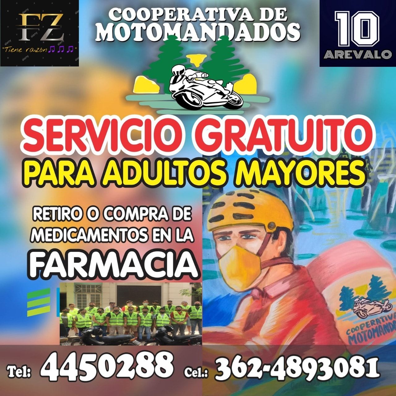En Resistencia (Chaco), está la “Cooperativa de Motomandados” de Fabio Zerpa, quien presta servicio de motomandados GRATUITOSpara adultos mayores que tienen dificultades para que le busquen su medicamento, que no cuentan con algún familiar que los atienda, entre otras cuestiones más.