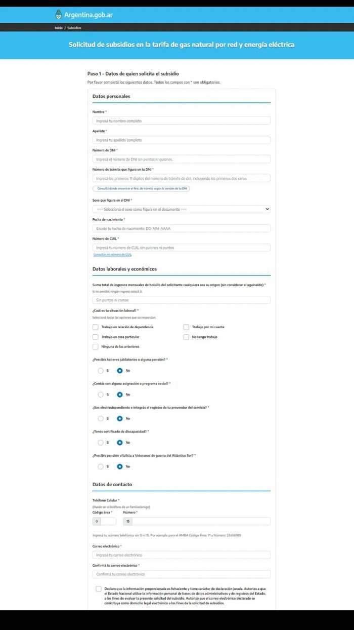 La información volcada en los formularios tiene carácter de declaración jurada y será cruzada con las bases de datos de los diferentes organismos estatales a los efectos de detectar posibles inconsistencias.