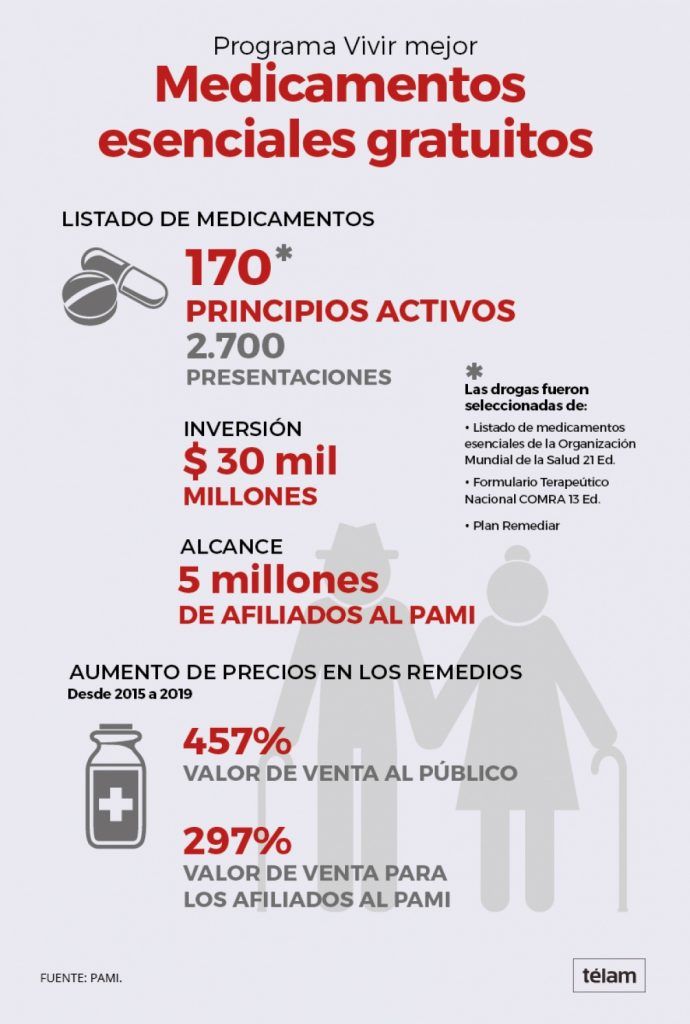 En declaraciones a radio Mitre, la directora de PAMIdijo que trabajaban en el diseño del vademécum de 170 medicamentos esenciales, cuyo listado se dará a conocer en marzo y detalló que incluye los principios activos de las enfermedades prevalentes de la población mayor de 65 años, lo que “podría derivar en unas 2.700 presentaciones”.