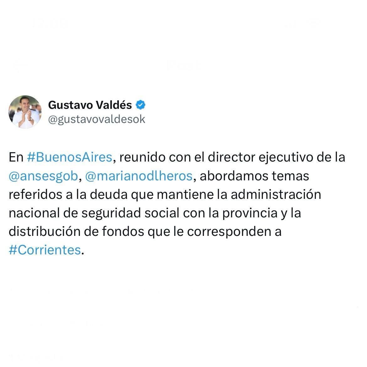El Gobernador Gustavo Valdés mantuvo un encuentro con el director ejecutivo de la Anses, Mariano A. S. de los Heros donde abordaron cuestiones referidos a la distribución de fondos que le corresponden a Corrientes. El encuentro tuvo lugar en Buenos Aires, según lo informó el mandatario provincial a través de...