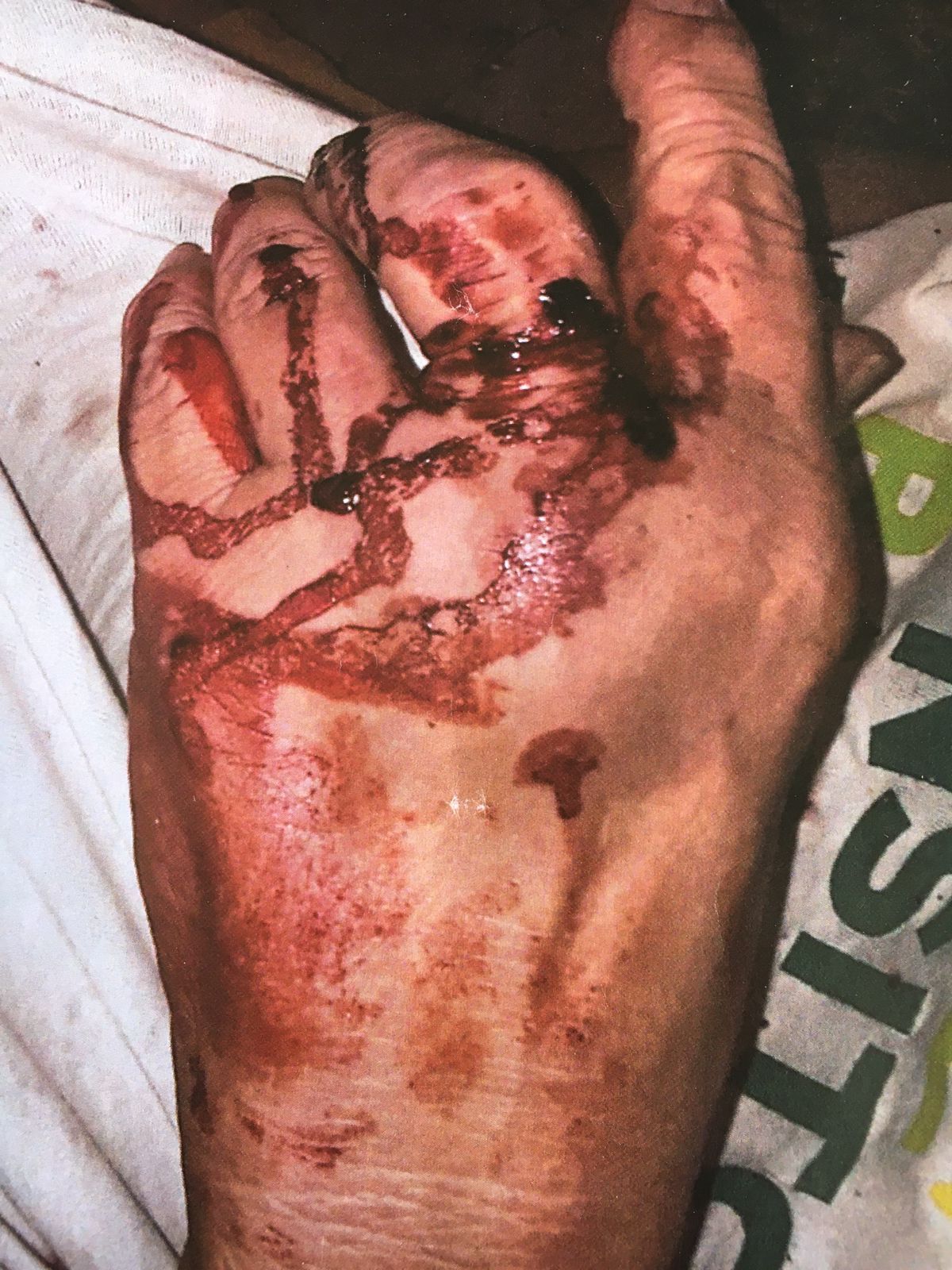 El hombre revivió el lamentable día en que sufrió la “primer golpiza en manada”. Precisó que su hijo lo golpeó sin previo aviso, cuando lo tumbó arremetió la pareja del primero con un palo de escoba, y se unió su nieto de 17 años, quien lo pateó hiriéndolo en la cabeza.